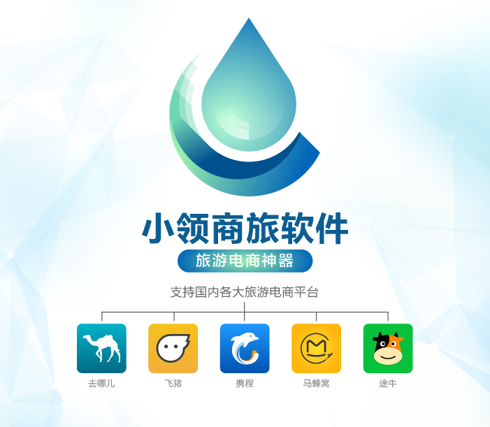 小領(lǐng)商旅軟件,旅游電商神器,國(guó)內(nèi)各大旅游電商平臺(tái)(去哪兒,攜程,途牛,飛豬,螞蜂窩...)均可支持:機(jī)票集成,價(jià)格更新,排名分析,價(jià)格對(duì)比,做電商就是這么容易!。